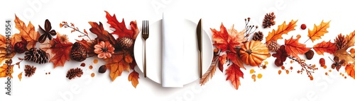 © Sukifli Dakheng, Fototapeta premium Thanksgiving napkin ring clipart, table decor element, watercolor illustration, defined edges, autumnthemed napkin holder, isolated on white background