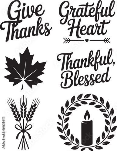 Obraz premium Thanksgiving Quote Clipart | Grateful Thankful Blessed SVG