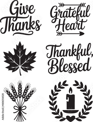 Obraz premium Thanksgiving Quote Clipart | Grateful Thankful Blessed SVG