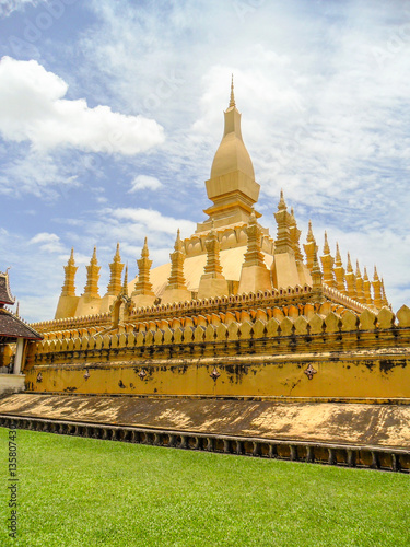 Naklejka premium That Luang is a gold-covered large Buddhist stupa in the center of Vientiane,...
