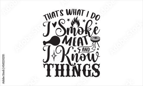 Fototapeta premium That’s what I do I smoke meat and I know things - Barbecue T-shirt Design, Hand drawn lettering phrase, Handmade calligraphy vector illustration, svg for Cutting Machine, Silhouette Cameo, Cricut.