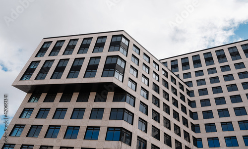 © Seleznov_Molchanova, Fototapeta premium The Abstract angled office building windows background