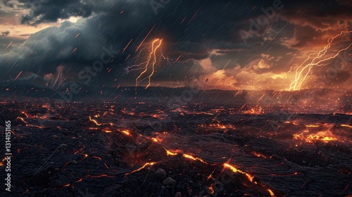 Naklejka premium The abstract beauty of a lightning storm captivates. Dark clouds and rain enhance the scene's drama.