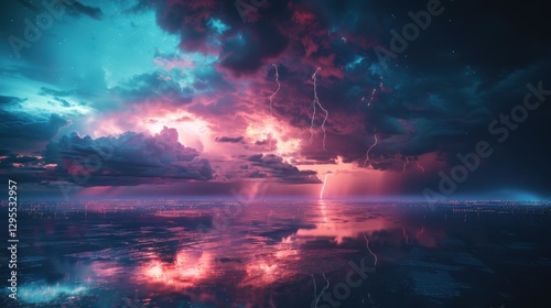 © IgitPro, Obraz premium The abstract storm is a captivating sight. Lightning and rain add to the dramatic atmosphere.