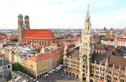 Fototapeta premium The aerial view of Munich city center from the Peterskirche