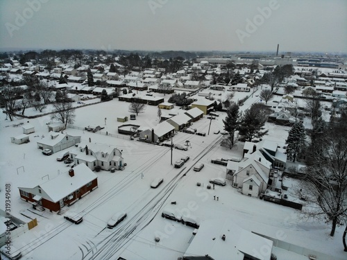 © Khairil, Obraz premium The aerial view of residential area after a snowstorm near Wilmington, Delaware, U.S.A