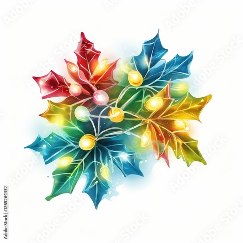© law, Obraz premium the AI Image Generator, Festive Pine Branch With Bright Yellow Holiday Lights