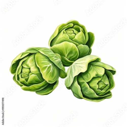 © boying, Fototapeta premium the AI Image Generator, Fresh Heads of Green Lettuce Isolated