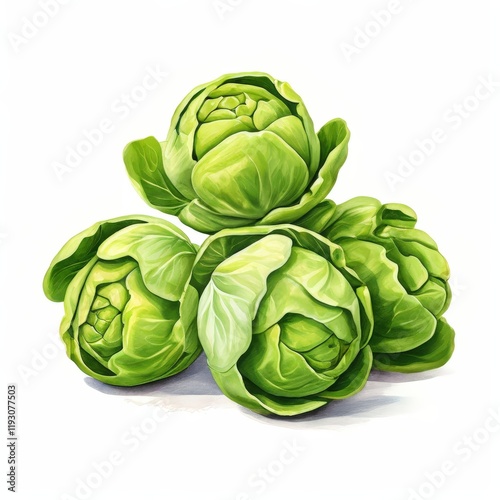 © boying, Fototapeta premium the AI Image Generator, Fresh Heads of Green Lettuce Isolated