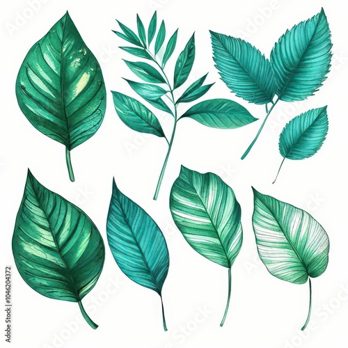 © boying, Obraz premium the AI Image Generator, Green leaves isolated on white background