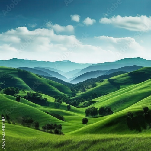 © Seaonweb, Obraz premium the AI Image Generator, Panoramic green hills