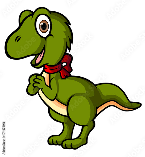 Naklejka premium The albertosaurus is wearing the ribbon necklace