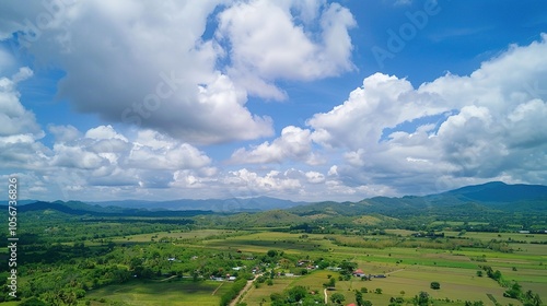 Naklejka premium The allure of a landscape filled with the beauty of blue sky, fluffy white...