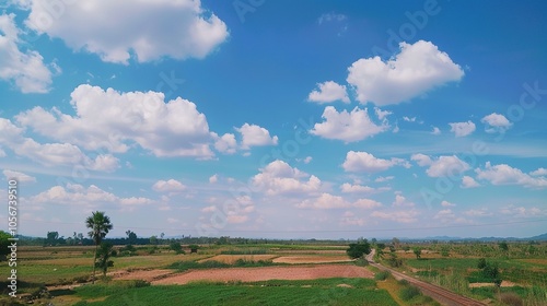 Obraz premium The allure of a landscape filled with the beauty of blue sky, fluffy white...