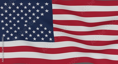 Naklejka premium The American flag proudly waves, a symbol of freedom and unity, its vibrant red and white stripes and deep blue field filled with stars billowing in the wind.