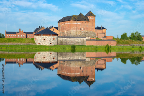 © Anna, Fototapeta premium The ancient fortress of the city of Hameenlinna on the shore of Lake Vanayavesi with a reflection. Finland