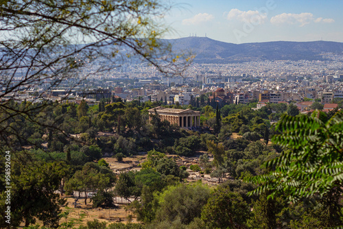 © Blumesser, Obraz premium The ancient Greek temple of Hephaestus in ancient Agora in Athens as seen from the top of Acropolis hill in Greece