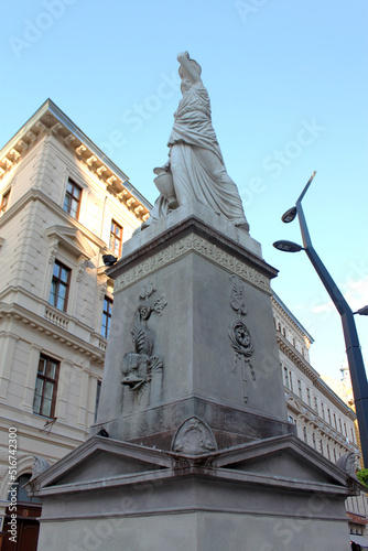 © Daniel, Fototapeta premium The ancient Nereids fountain on the Ferenciek square in the old town of Budapest, Hungary, Eastern Europe. Nymphs, one with a jar on top of her head, beautiful mythological stone figures.