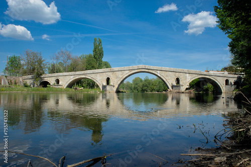 © Mariia Human, Fototapeta premium The ancient Roman bridge over a river in Bulgaria, featuring beautiful symmetrical arches reflected in the water