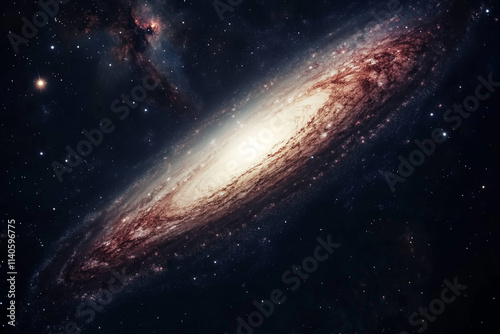 Fototapeta premium The Andromeda galaxy as seen from Earth. The long exposure time created star trails, and professional color grading was used to high