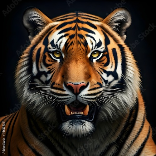 © SAJOL, Fototapeta premium The angry tiger looking aggresive of isolated on a black background