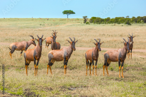© Kushnirov Avraham, Fototapeta premium The antelopes Tsessebe graze