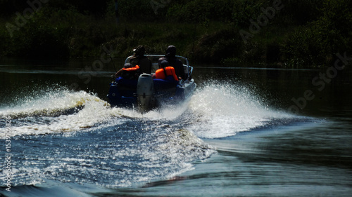 © Сергей Семенов, Naklejka premium the are boat is floting