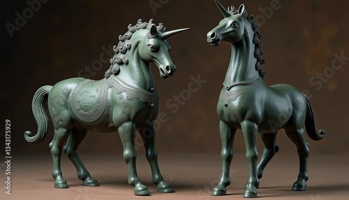 © yh, Fototapeta premium The Artistic Beauty of Bronze Unicorn Sculpture