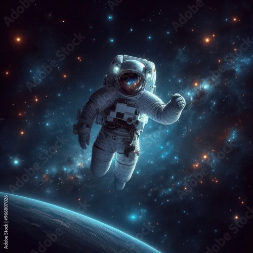 Fototapeta premium The astronaut floats freely in outer space.