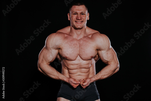 Fototapeta premium the athlete bodybuilder shows his muscles after sports