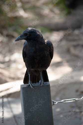 Fototapeta premium the Australian raven is perched on a pole