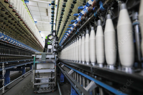 Naklejka premium The automatic doffing robot is performing doffing operations in a spinning...