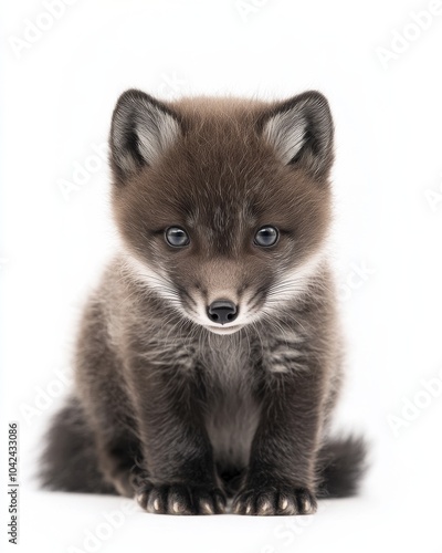 © Eyestetix Studio, Obraz premium the baby Arctic Fox , portrait view, white copy space on right, Isolated on white Background