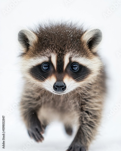 © Eyestetix Studio, Fototapeta premium the baby Common Raccoon, portrait view, white copy space on right, Isolated on white Background