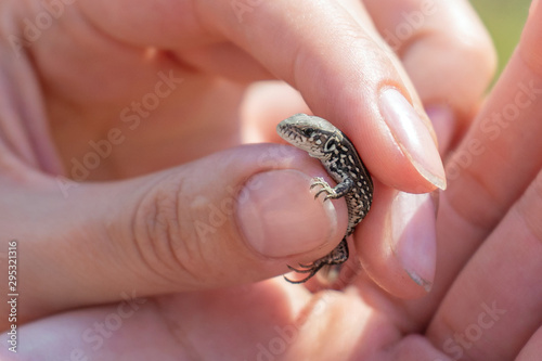 © Роман Самсонов, Obraz premium the baby lizard is very small in a woman's hands