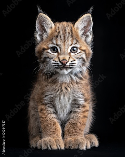 © Eyestetix Studio, Obraz premium the baby Lynx canadensis front view, white copy space on right, Isolated on black Background