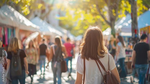 Naklejka premium The backdrop of the street art fair is a dreamlike blur with artists...