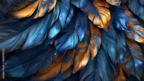 Fototapeta premium The background is an abstract painting with gradients and textures in blue, green, and gold colours.