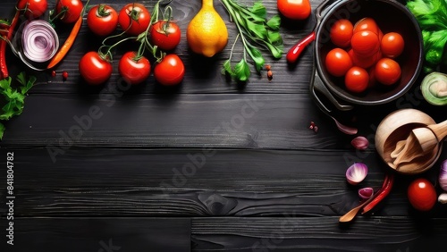 © Muhammad, Naklejka premium The background of cooking On a black wooden background