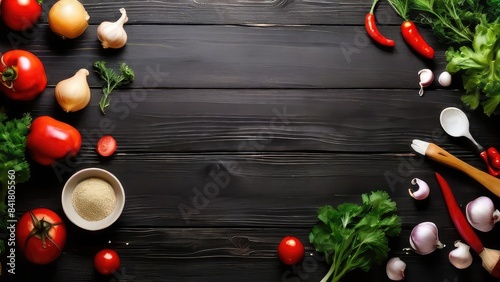 © Muhammad, Naklejka premium The background of cooking On a black wooden background