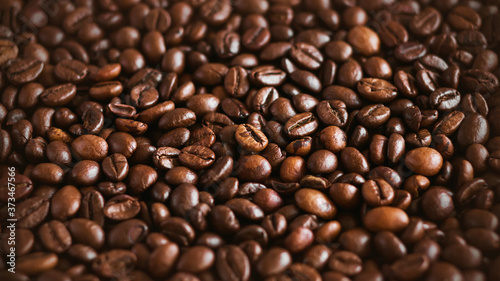 Fototapeta premium The background shows a lot of roasted natural aromatic coffee beans, which...