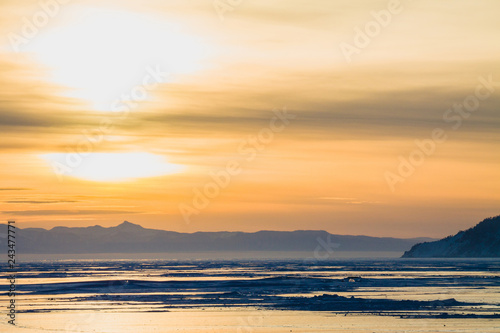 © wundermann, Naklejka premium The Baikal lake in winter during sunset