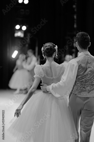 Naklejka premium The ballet dancers at the time of the performance on the stage of the theater