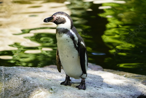Fototapeta premium The banded penguins are penguins that belong to the genus Spheniscus. There are four living species, all with similar banded plumage patterns. Walsrode Bird Park, Germany.