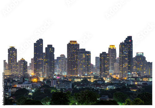 © stock.metket.com, Obraz premium The bangkok skyline glows at twilight, showcasing its modern architecture and vibrant urban landscape isolated on transparent background
