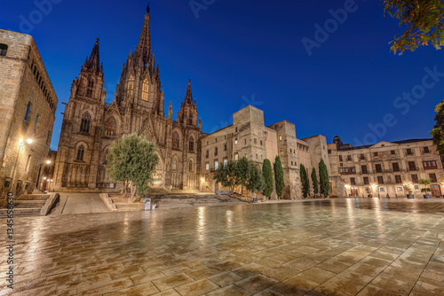 © elxeneize, Fototapeta premium The Barcelona Cathedral with no people at night