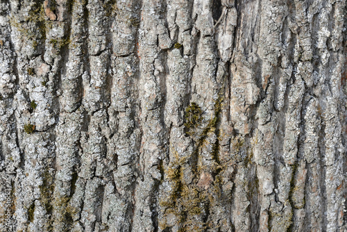 Obraz premium The bark of an old tree covered with a moss close up as texture and background