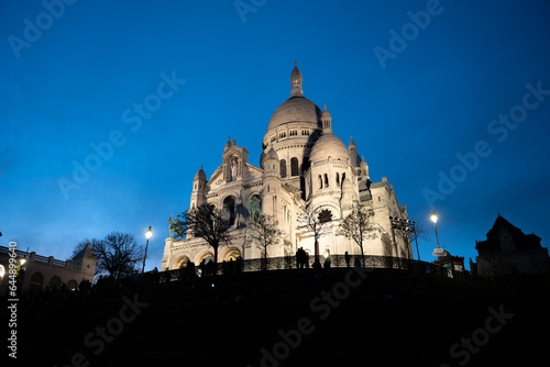 Fototapeta premium The Basilica of Sacre Coeur de Montmartre illuminated in the evening. Roman...