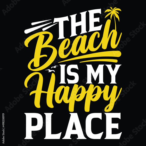 Fototapeta premium The Beach Is My Happy Place T-shirt Design. Summer Typography T-shirt Design.
