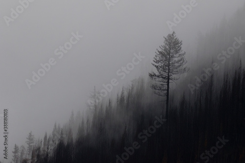 Naklejka premium The Beachie Creek Fire near the Santiam river in Oregon left the landscape...